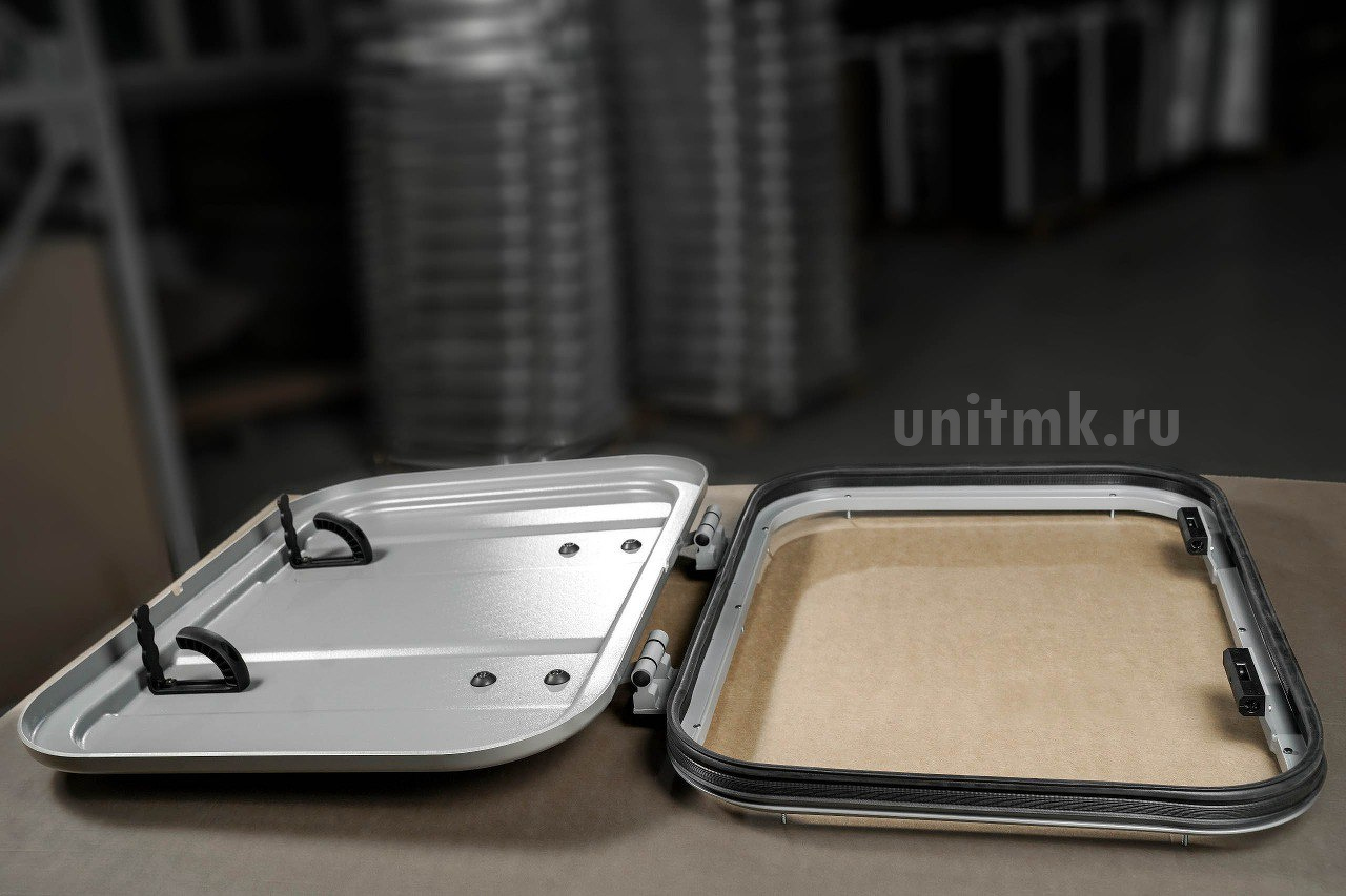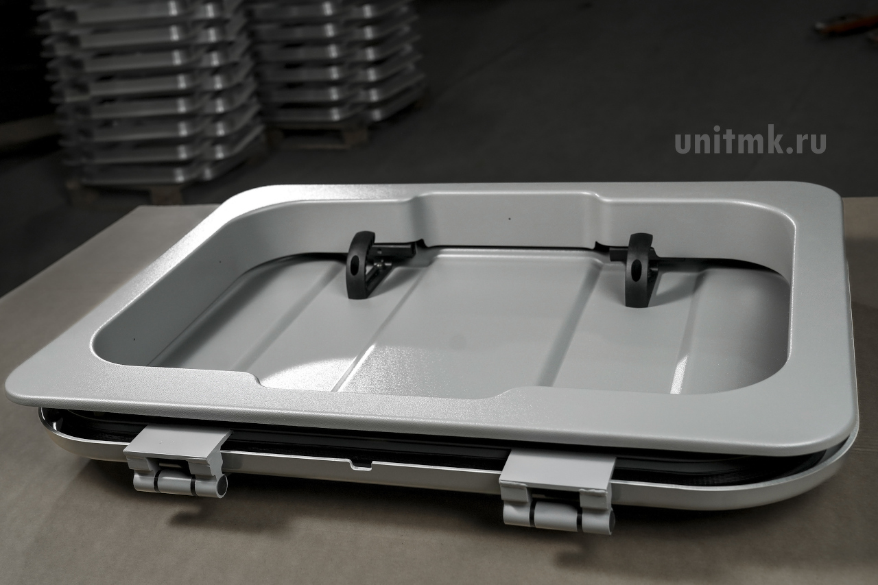 Аварийно-вентиляционный люк с металлической крышкой. В первую очередь данный люк предназначен для условий бездорожья, охоты, рыбалки и т.д. Большой проём люка позволяет высовываться или вылазить из него даже в толстой зимней одежде.Люк аварийно-вентиляционный полностью соответствует всем требованиям ГОСТ Р 41.52 – 2005 и Правил ЕЭК ООН №№ 52 и 107.Фиксирующий механизм люка четко фиксирует крышку люка во всех открытых положениях.В закрытом положении аварийно-вентиляционный люк обеспечивает полную герметичность крыши салона транспортного средства от попадания атмосферных осадков.Конструкция аварийно-вентиляционного люка полностью ремонтно-пригодна.Конструкция люка исключает всякую возможность его непредвиденного открытия и закрытия.Облицовка люка - из материала - АБС-пластик.Крышка - металл + АБС-пластик.